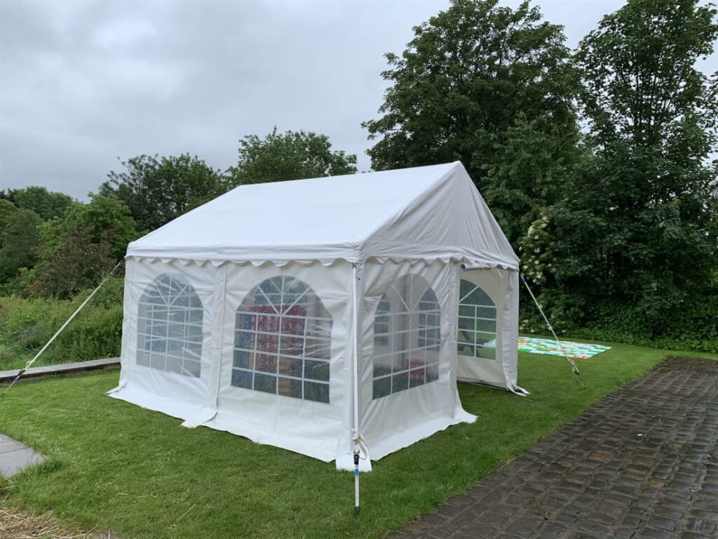 Our Tubular Frame Marquees are available in a range of widths (3m, 4.5m, & 6m) and are also adaptable in various lengths which makes them ideal for small coverage areas in residential gardens, and also for smaller areas at festivals such as security and first aid points. The frame Marquee has the option to either have plain white, Georgian window or cristal clear panoramic walls. Suitable for use on grass where staking is possible or a hard surface with appropriate weighting.